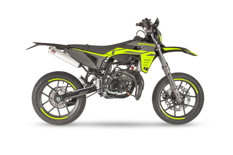 50cc SuperMotard modell med 17" fälgar skodda med greppvänliga Michelin däck. Kraftfull 300mm bromsskiva fram och rejäl fjädringsväg. Driftsäker Minarelli AM6 motor med Vattenkylning och separat oljetank.